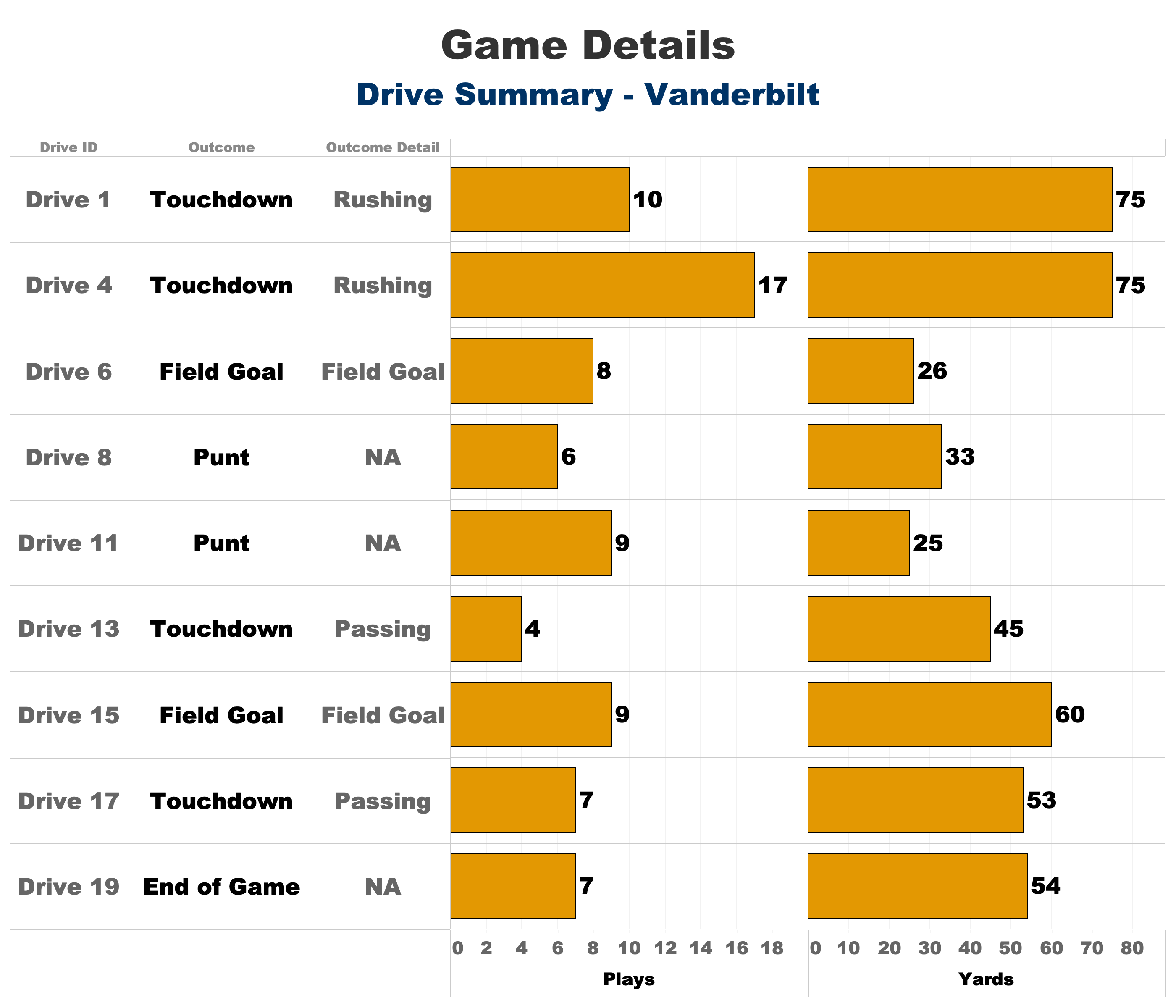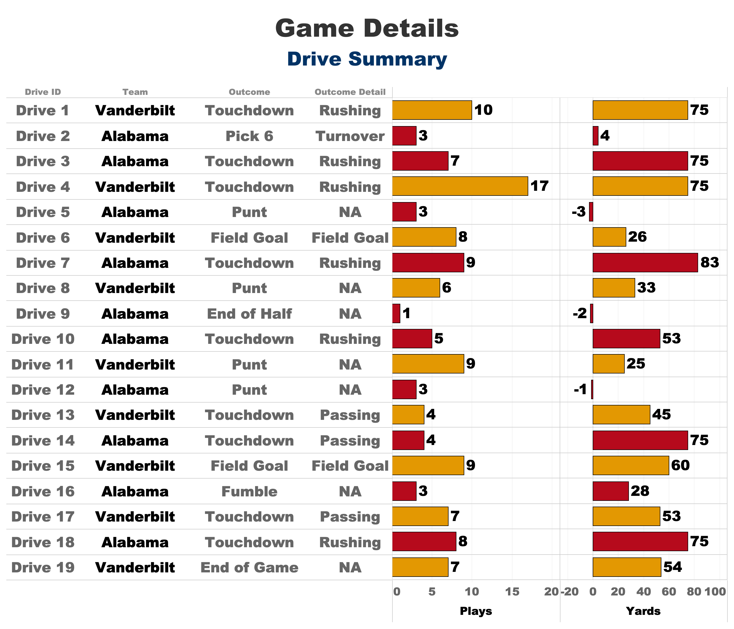 When you break down the drives, you also see how turnovers were just an additional factor that doomed Alabama. An interception returned for a Vandy touchdown during their opening drive and a late fumble would’ve been hard to bounce back from for any team. Not to take away from Vandy in any way, though. They found points through the air, on the ground and knocked two field goals.