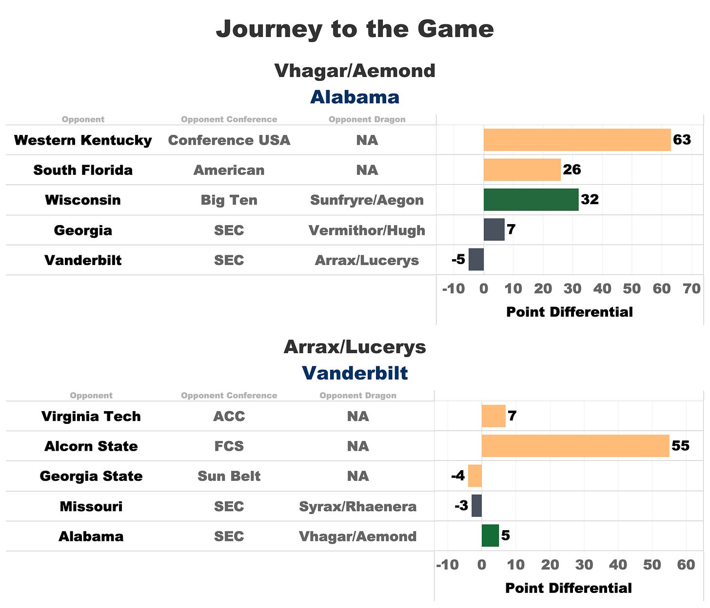 In that initial piece I assigned the Alabama squad to the Vhagar/Aemond dragon pairing. And Vanderbilt found its spirit pairing with Arrax/Lucerys. It was wholly appropriate at the time. Vandy was coming off a 2-10 campaign in 2023 and they were 18-63 against the Tide dating back to 1903. I honestly didn’t even know they played Alabama this season but it still made so much sense.